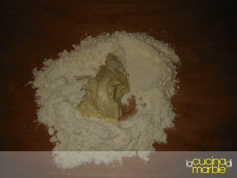mettere poi su un canovaccio ben infarinato appoggiato su una teglia